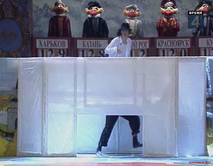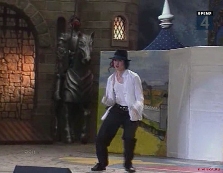 Пародия на танцы Майкла Джексона с очень очень длинными разными ногами.