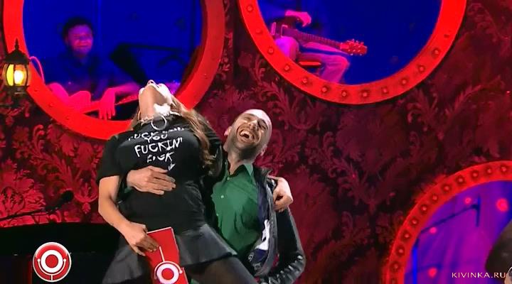 Алена Водонаева в майке Fuck you fucking fuck, танцует с Евгением Папуинаишвили и знаменитая грузинская поддержка;
