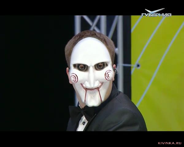 Человек в маске фильма Пила объявляет и участвует в конкурсах.