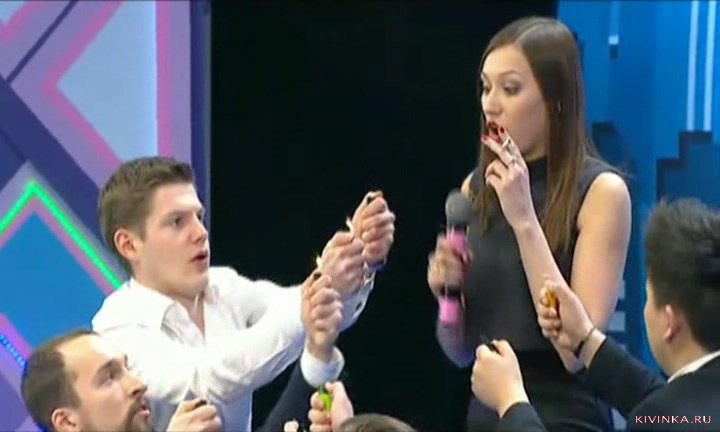 Оля встала в угол, где больше не играют в КВН (к ведущему).