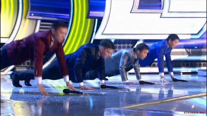 Поют песня и отжимаются от пола над микрофонами.