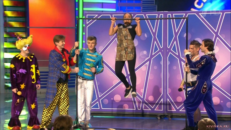 Своя лига КВН в цирке, пародия на Маслякова за будкой.