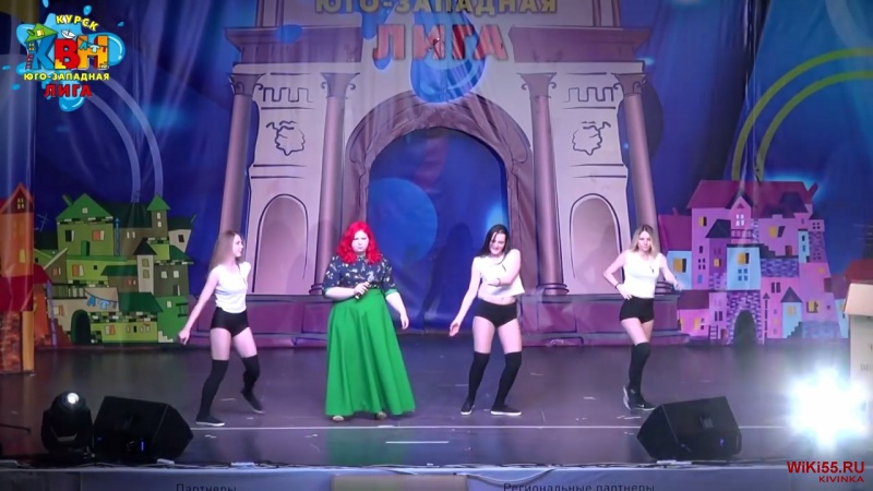 В команде две девушки с красными волосами и зеленой юбкой, одна телка толстая.