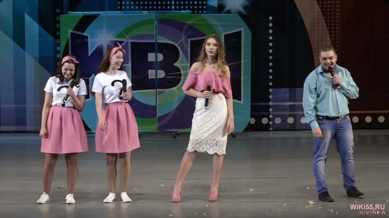 Команда КВН Бобрята.Девочка и учитель поменялись местами.