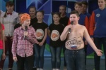 Команда КВН ???У толстого мальчика на животе карта России и флаг и он дергает жиром - тверк животом. Я ем и страна увеличивается!