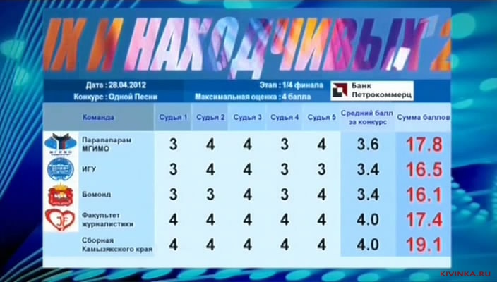 Цитата: Лучшие шутки и сценки из 7-й игры нового сезона КВН 2012 года - третья 1/4 финала