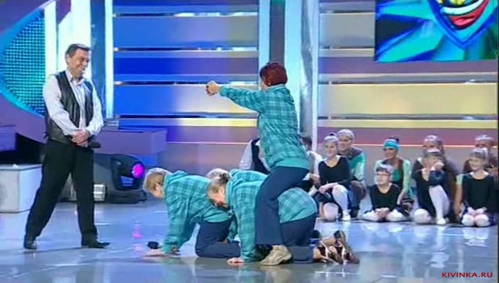 Ребята показали как начиналась их команда - пригласили маленьких детей, а потом бабушек и дедушку. Типа девочки захотели переодеться и попросили отвернуться мальчика и через 50 лет бабушку попросили тоже самое и дедушка с удовольствием отвернулся. Кстати бабушки показали классную пародию и игру танчики (Battle city) -
