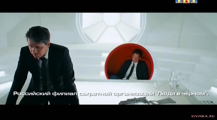 В российской секретной лаборатории Люди в черном. Один Черных прикалывается над другом со стирателем памяти.
