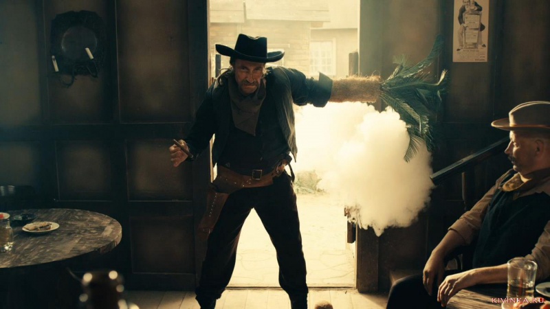 Старые времени. Бар для ковбоев. Пришел незнакомец Лютый Джо, который трахнул коня шерифа, курит сигары жопой и у него вместо руки пальма.