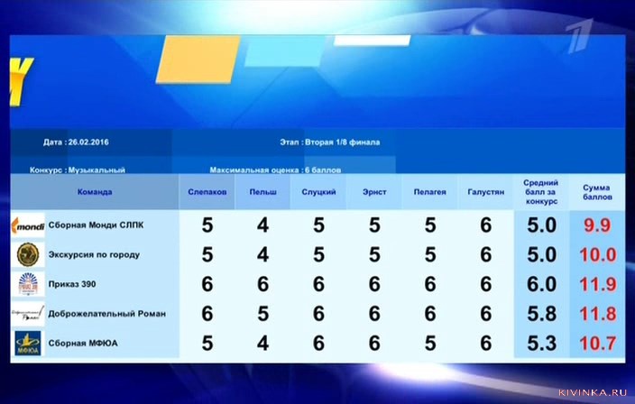 Команда КВН Сборная МФЮА, 2-я 1/8 финала