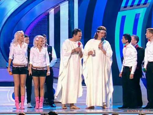 4. Скажите, зачем на полуфинале премьерки вы сказали на биатлоне какое-то украинское слово, из-за которого большая половина зала не поняла шутку, которую вы хотели сказать? Даша: Вы знаете, мы только потом, после эфира, поняли, что слово чисто украинское и в Москве его могут не знать. Как говорится, протупили!)) Шутка была про то, что Бритни Спирс сербает, когда чай пьет.. Если честно, я даже не знаю, как перевести это на русский.. Кристина: Хрумкает? Серега: Причмокивает? Даша: Ну в общем, знаете, как люди многие чай пьют громко так, особенно если он горячий.. Ну вот так типа, мы предположили, что и Бритни Спирс делает. Кирилл: А че, смешно было бы такое увидеть! 5. Почему на четверти именно Гриша Шатохин говорил в номере «Даша переодевается»? Даша: Потому что у Гриши Шатохина самая красивая шапка! Кристина: Да, еще потому, что у него микрофон был! 6. Кому из звезд российского или украинского шоу-бизнеса вы отдали бы приз имени вашей команды? Даша: Может, Дане Борисовой?.. Серега: Это правда! Посмотрите выпуск ОСП-студии с Даной Борисовой! В образе человек или такой по жизни?